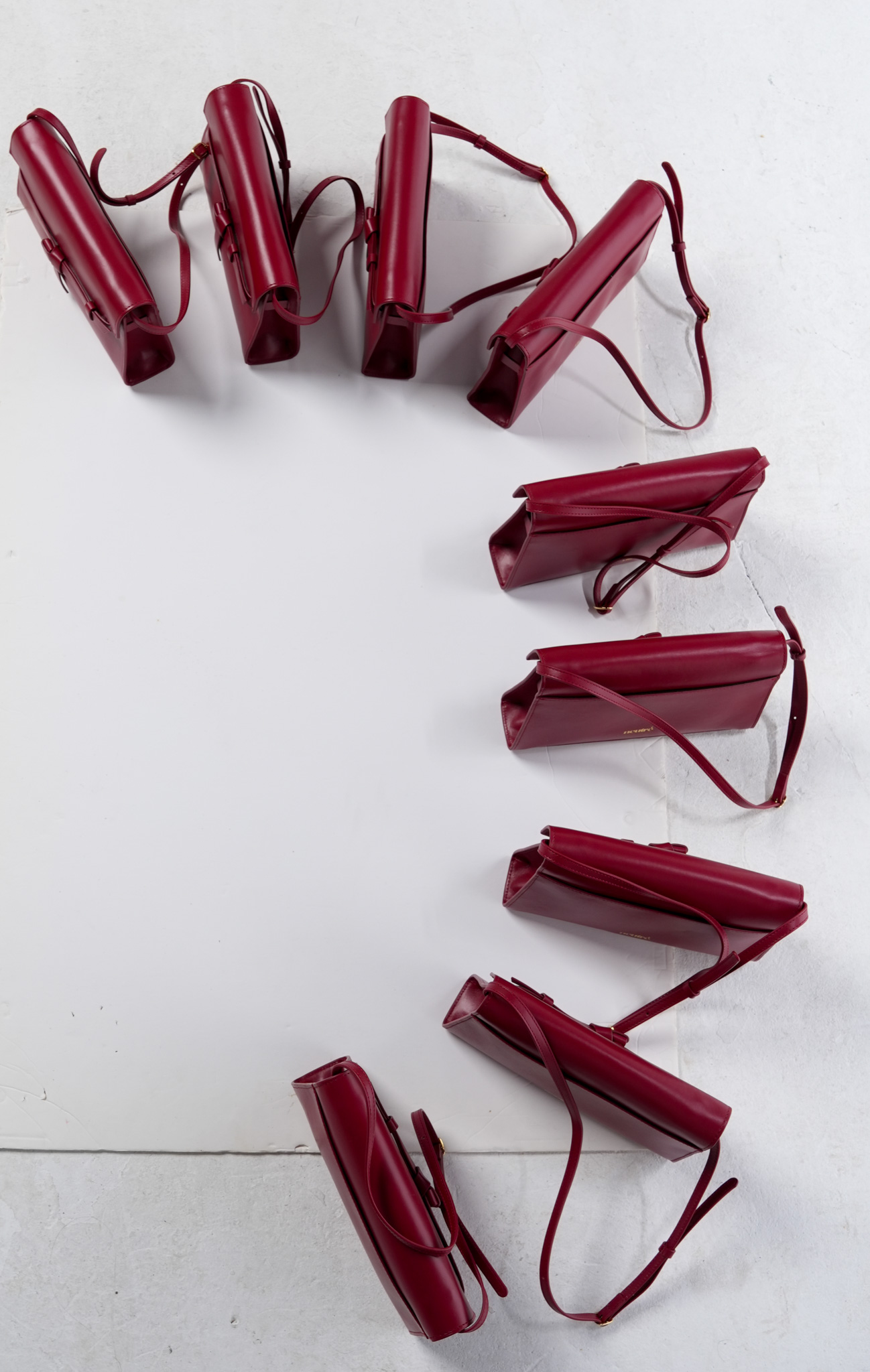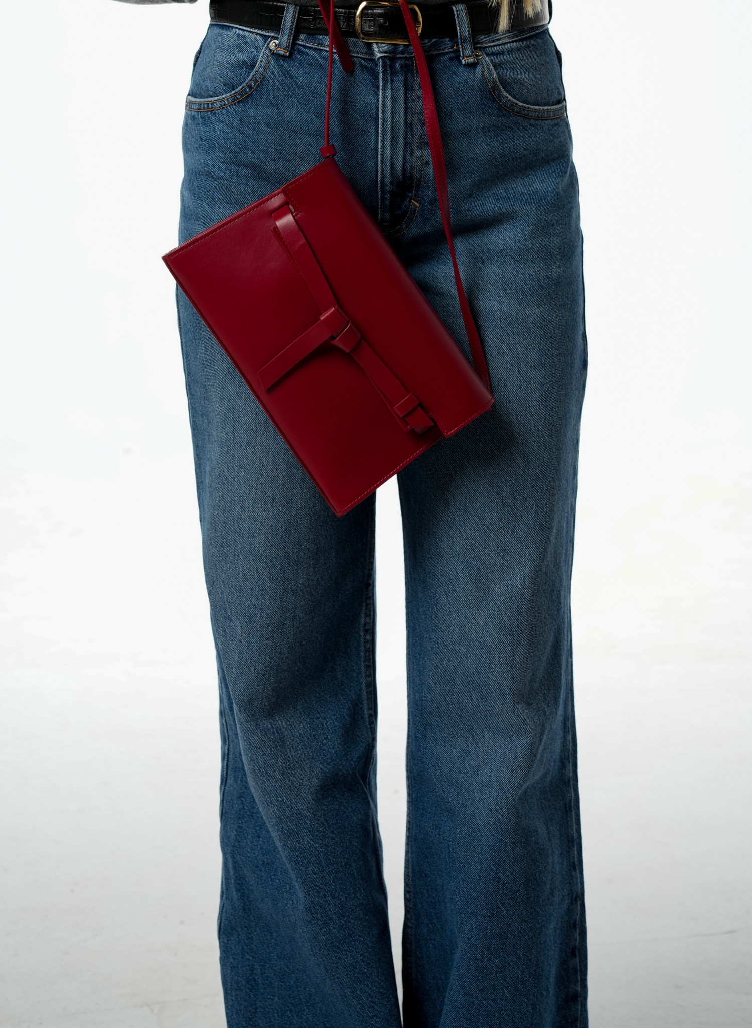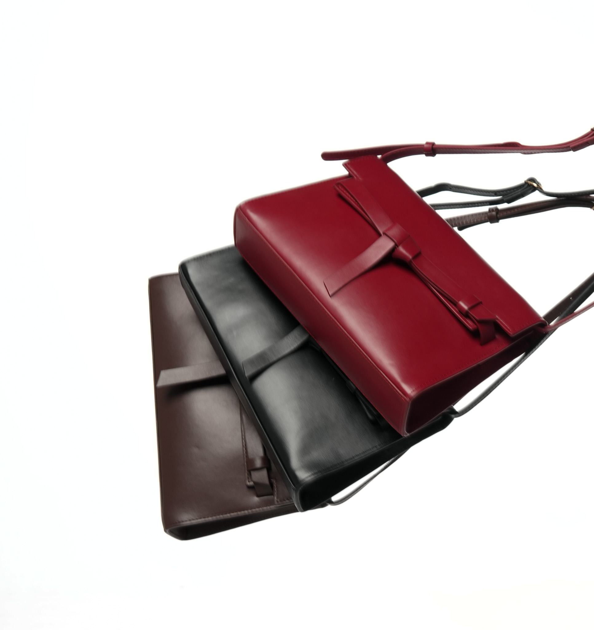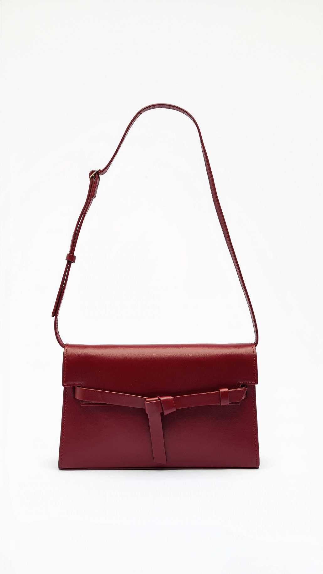 La solapa se adorna con un lazo sutil que aporta un gesto elegante,